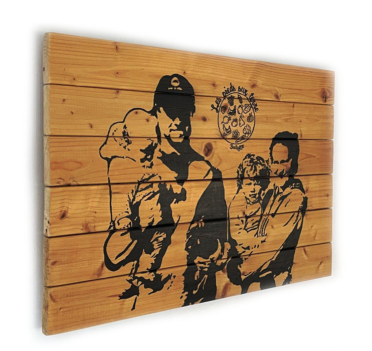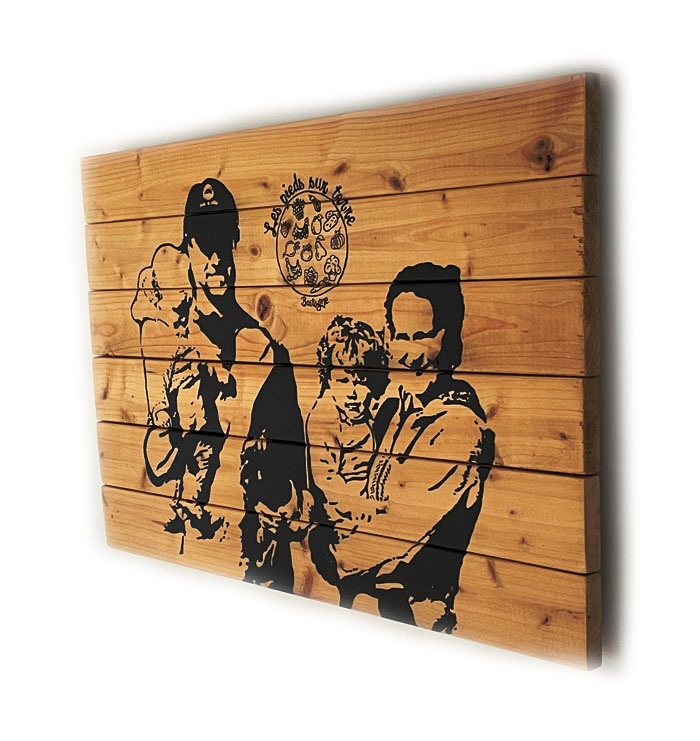 Description : peinture et Posca sur bois de sommier 60x40cm, motif personnalisé sur base de photos