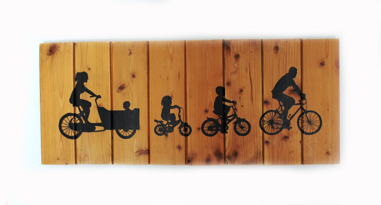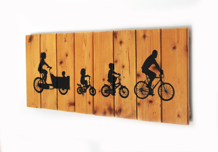 Description : peinture et Posca sur bois de plancher 75x30cm, motif personnalisé sur base de photos