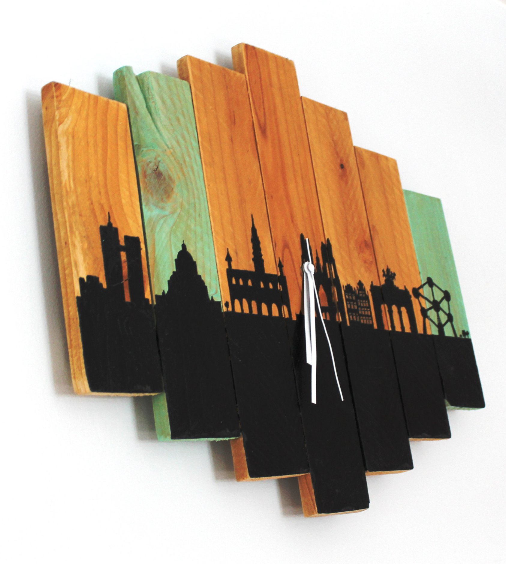 Description : horloge peinte sur bois de palette 48x40cm