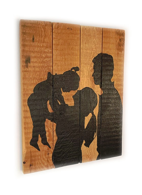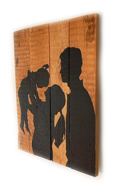 Description : peinture et Posca sur bois de palette 60x40cm, motif personnalisé sur base de photos