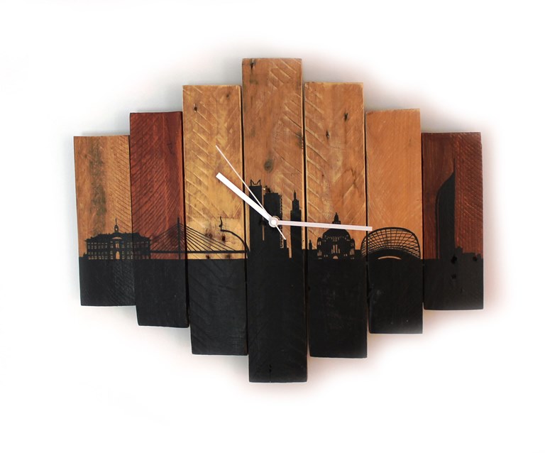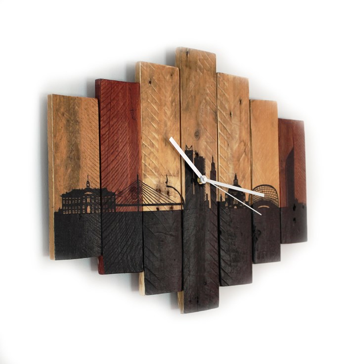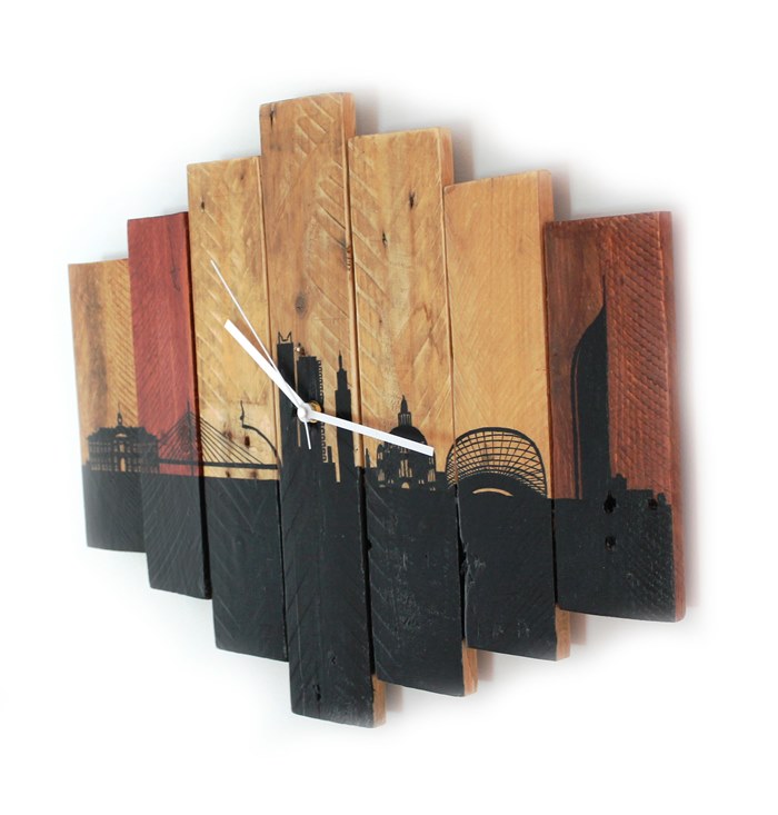 Description : horloge peinte sur bois de palette 48x40cm