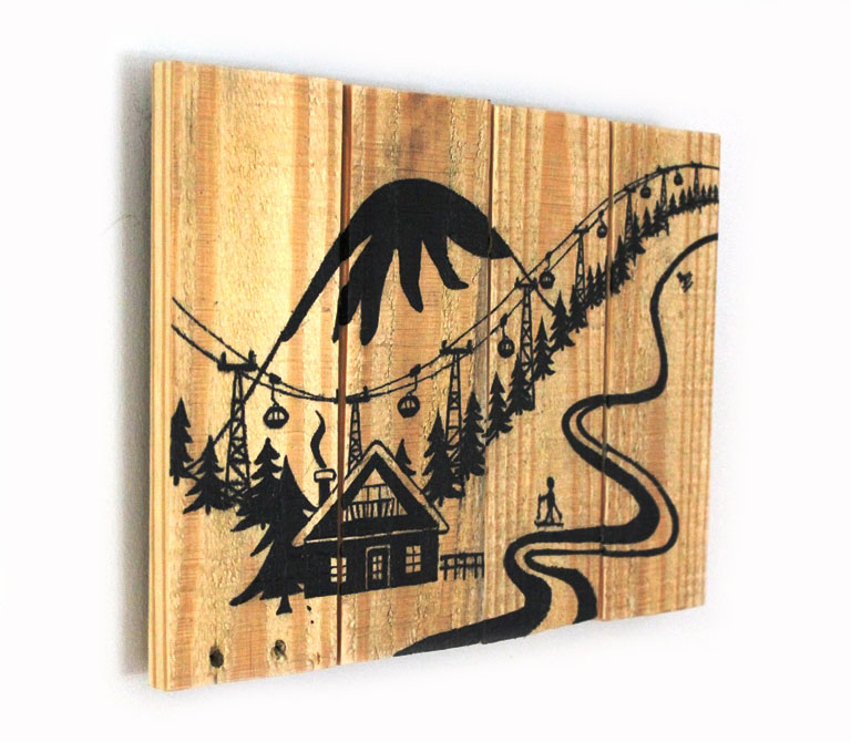 Description : Peinture et Posca sur bois de palettes 35x25cm