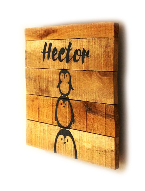 Description : peinture et Posca sur bois de palette 30x30cm, sur base d’un carton de naissance