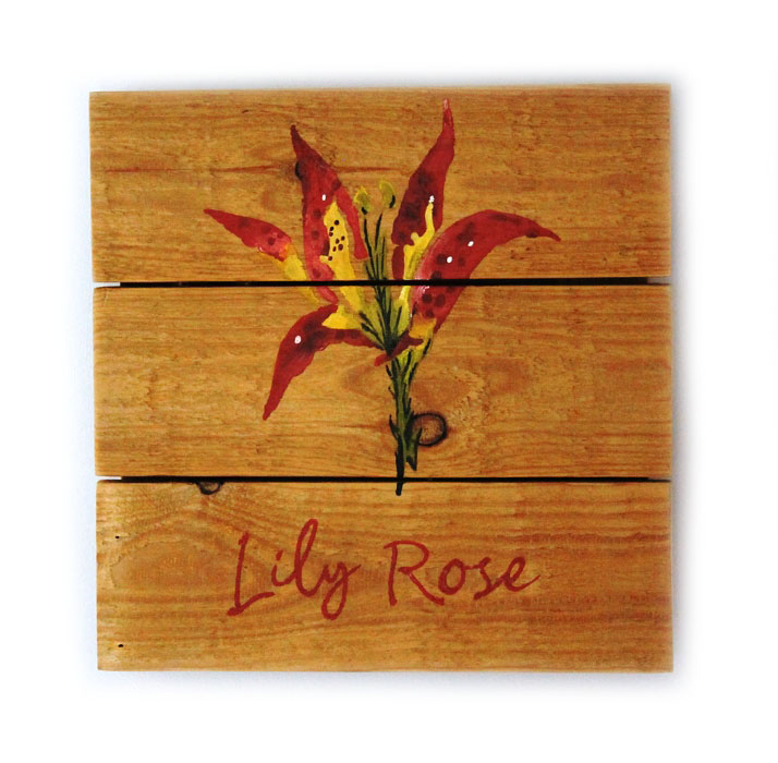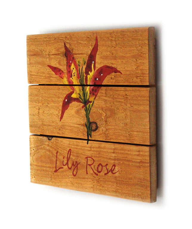 Description : peinture et Posca sur bois de palette 30x30cm, sur base d’un carton de naissance