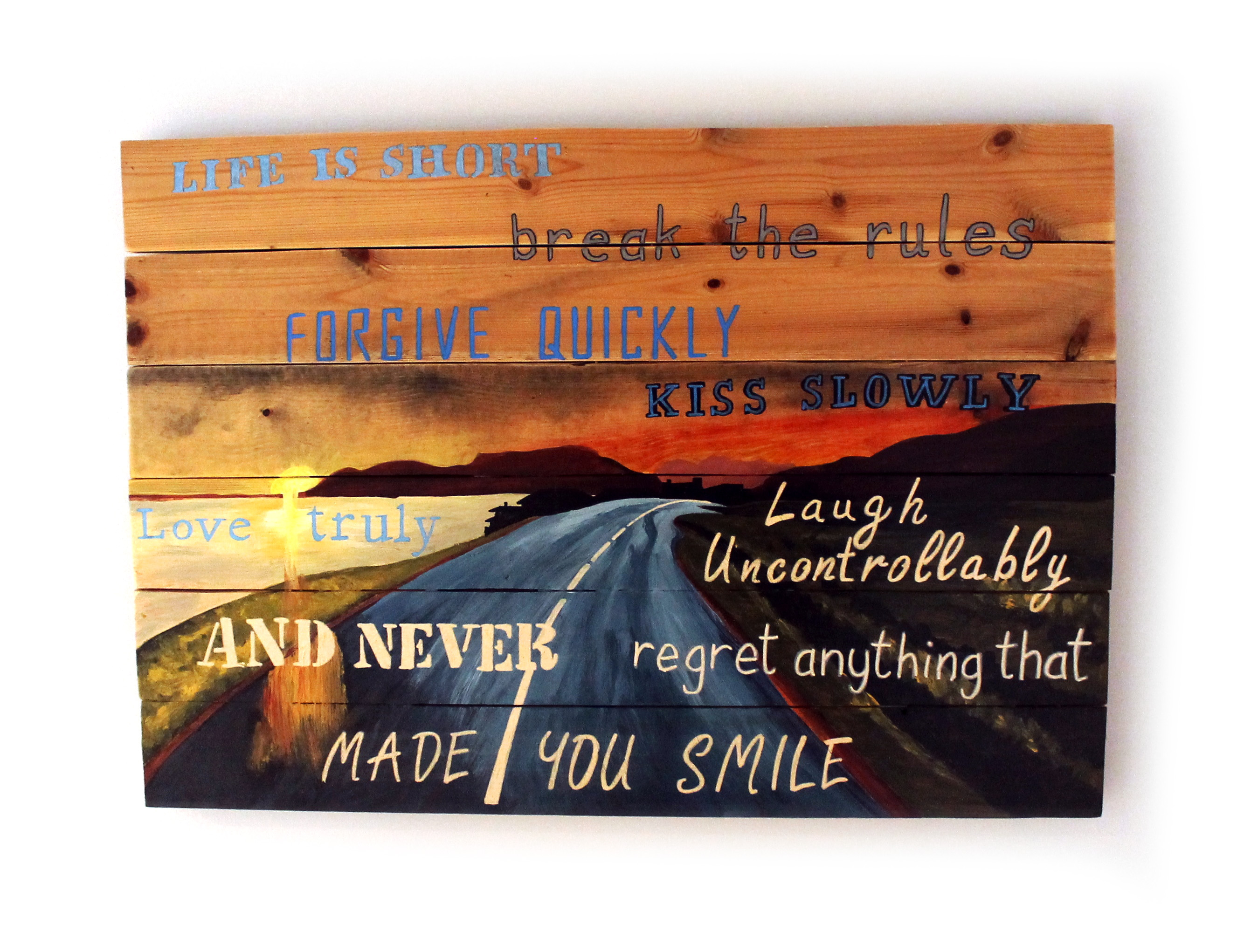 Description : peinture et Posca sur bois de plancher 60x42cm